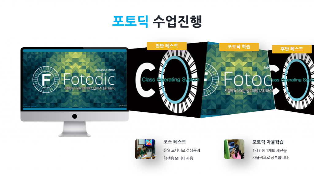 포토딕으로 습득한 영어구문을 코스 수업시간에 테스트하는 장면입니다.